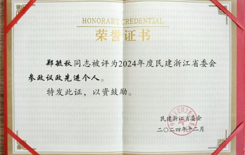宏昊荣誉 | 郑毓秋律师荣获民建浙江省委会多项荣誉表彰