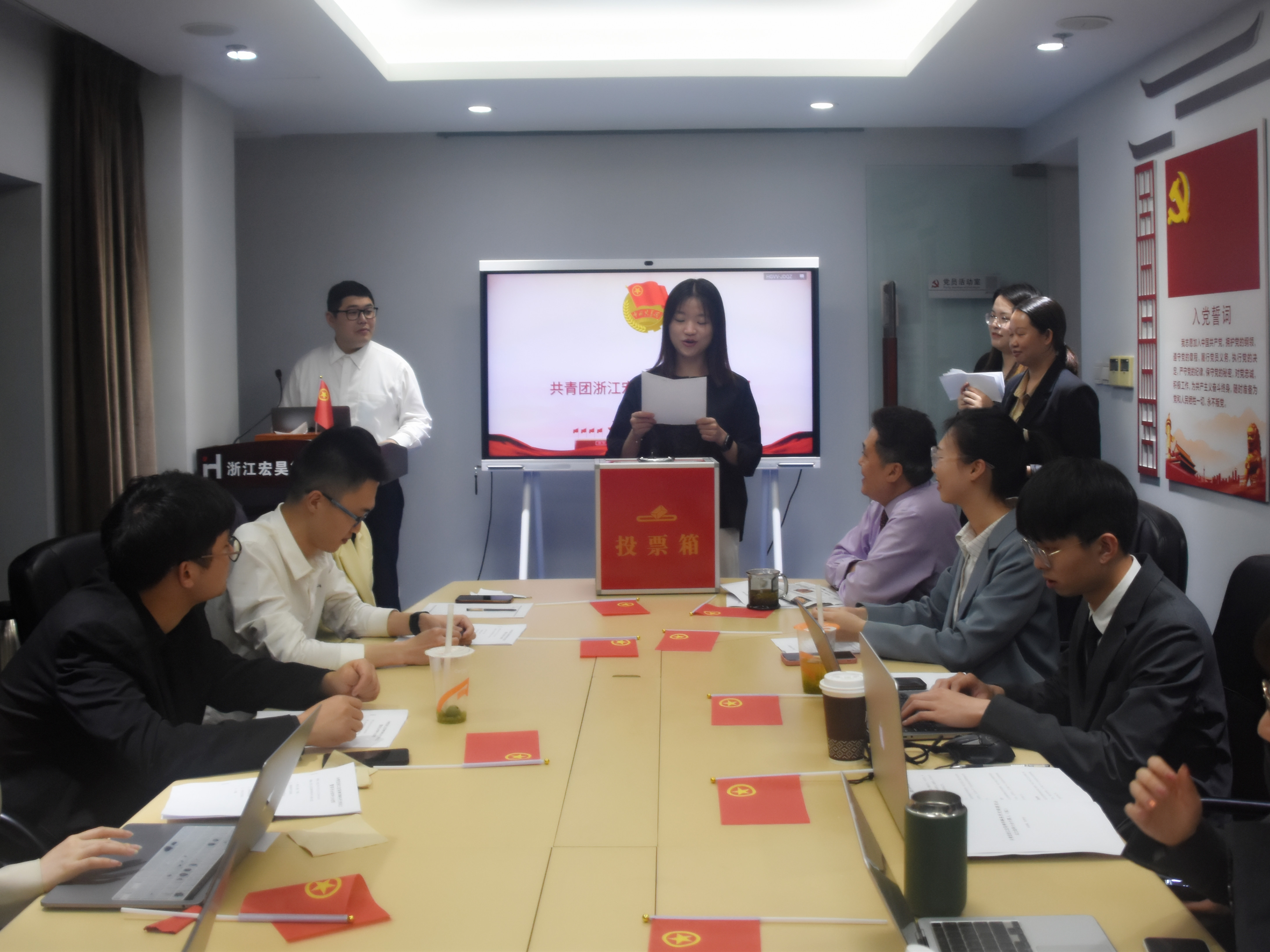 2022年5月12日,根据共青团杭州市律师行业委员会《关于同意浙江宏昊律师事务所成立团支部的批复》(杭律团[2022]09号),共青团浙江宏昊律师事务所支部成立大会暨委员选举大会在宏昊律师事务所会议室召开。事务所主任、宏昊联合党支部书记朱虹律师,事务所高级合伙人、宏昊联合党支部专职副书记傅娟娟律师,事务所高级合伙人、宏昊联合党支部纪检委员石磊律师参加了本次大会。会议通报了团支部选举筹备情况,本次选举采取无记名投票和差额选举方式,大会选举产生了共青团浙江宏昊律师事务所第一届支部委员会。朱博夫、陈红、陈鹏宇当选支部委员,朱博夫担任支部书记。