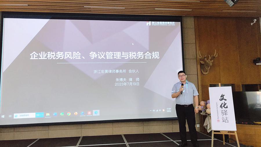 2023年7月19日,宏昊所朱博夫律师受“浙江东经科技股份有限公司”的邀请,为公司作“企业税务风险、争议管理与税务合规”的专题法律培训讲座,东经总部高管团队、财务会计部门、法务合规部门,各分公司销售管理团队等岗员工五十余人,通过线下、线上等多种渠道方式参与了此次专题培训。