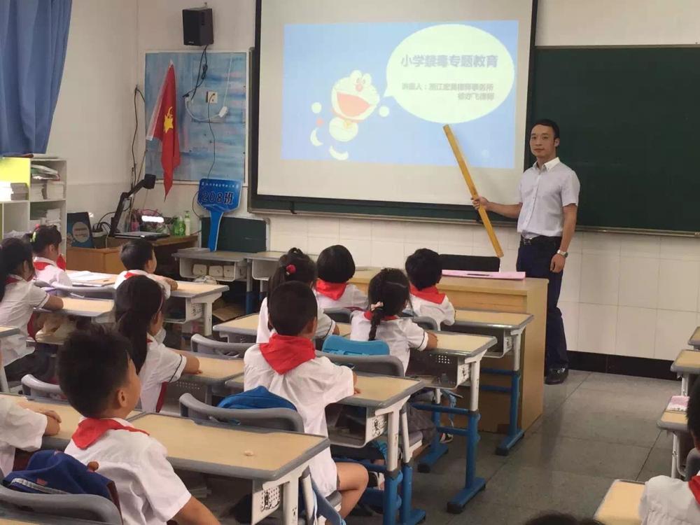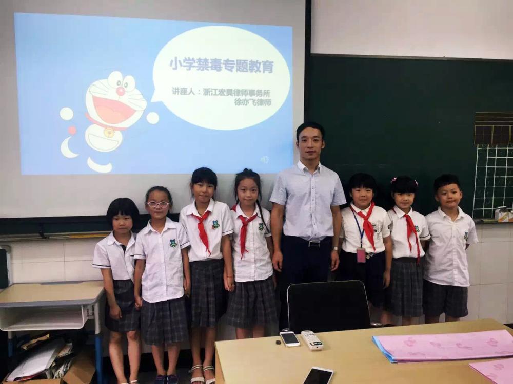 2016年9月10日教师节,我所徐亦飞律师受杭州市胜蓝实验小学的邀请,为该校二年级小学生奉上一堂形象生动的禁毒宣传教育课。课上,徐律师详细讲解了毒品的种类、吸毒的危害、关于涉毒的法律惩罚、如何学会保护自己等几个方面内容,应用卡通人物哆啦A梦的形象,将枯燥的理论知识和法律条文,转化为一幕幕生动的动画场景,让在场的小朋友和老师们都极其印象深刻。这次讲课,让各位同学深刻认识到了毒品的巨大危害,对预防毒品犯罪的相关知识也有了深刻的了解,获得了良好的宣传警示效果。