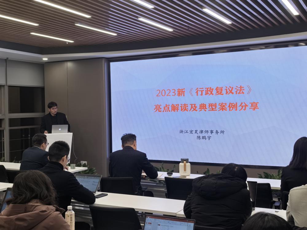 2023年12月21日,宏昊所在事务所会议室开展了例行的“周四晚业务学习培训”,本次业务学习由陈鹏宇律师主讲《2023<新行政复议法>亮点解读及典型案例分享》。我所执业律师、实习律师和律师助理等共二十余人参加了本次课程。